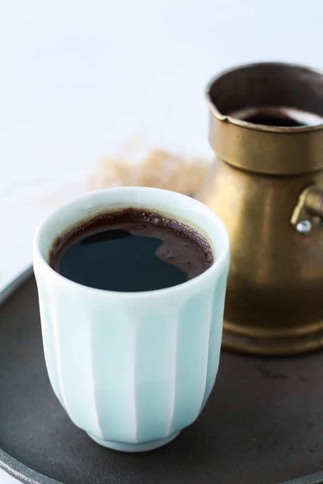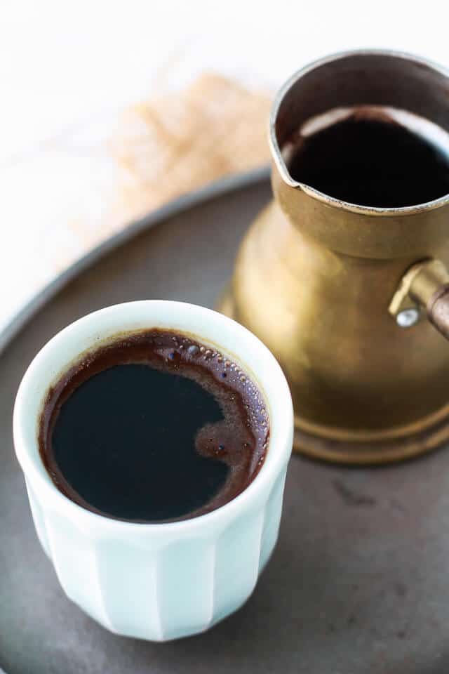 - Small coffee cups for Turkish coffee (like these on Amazon) or small espresso cups of 3 to 4 ounces (like these on Amazon)